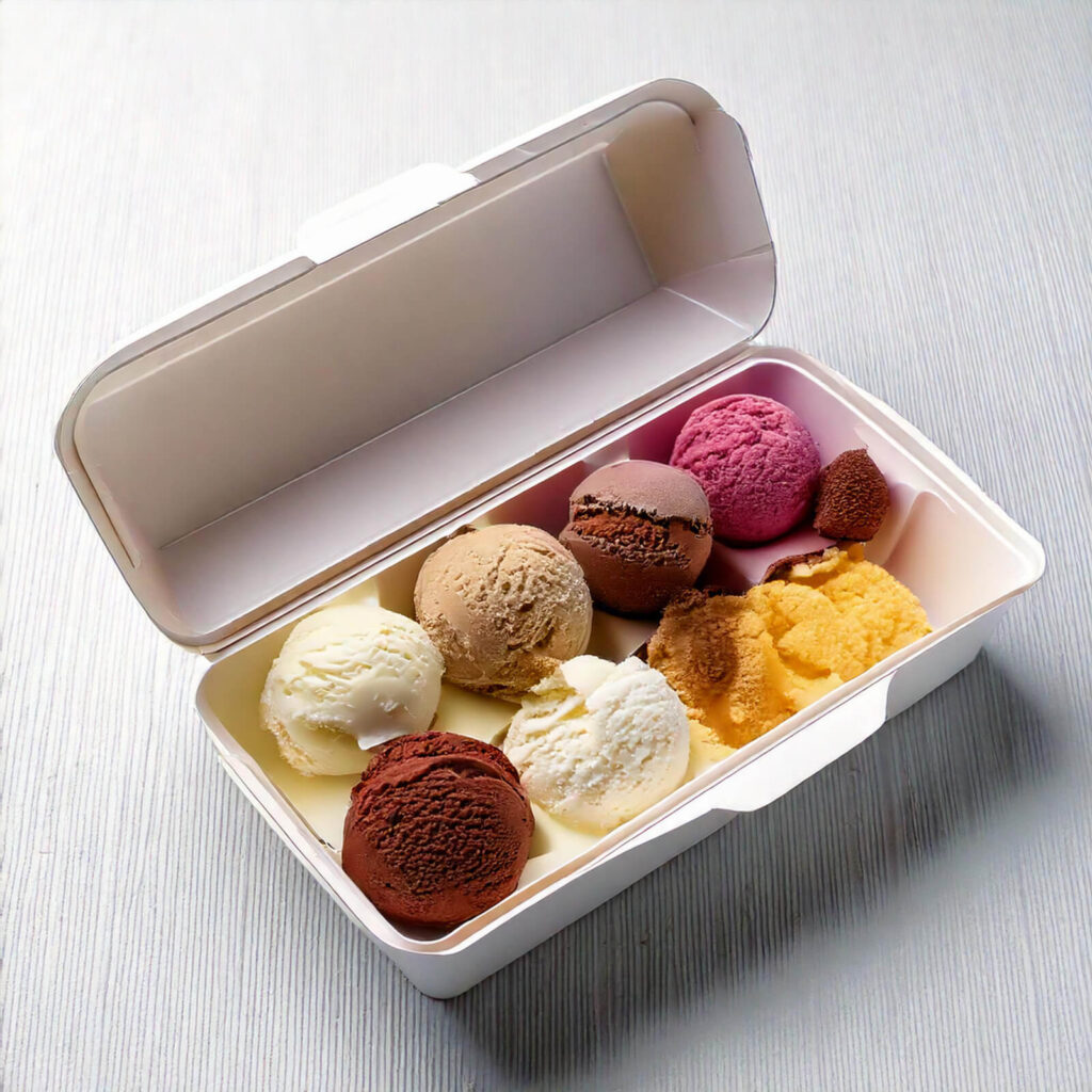 Mit unseren praktischen, isolierten Boxen bleibt dein Eis auch auf längeren Wegen perfekt gekühlt – für Genuss, wo immer du willst!